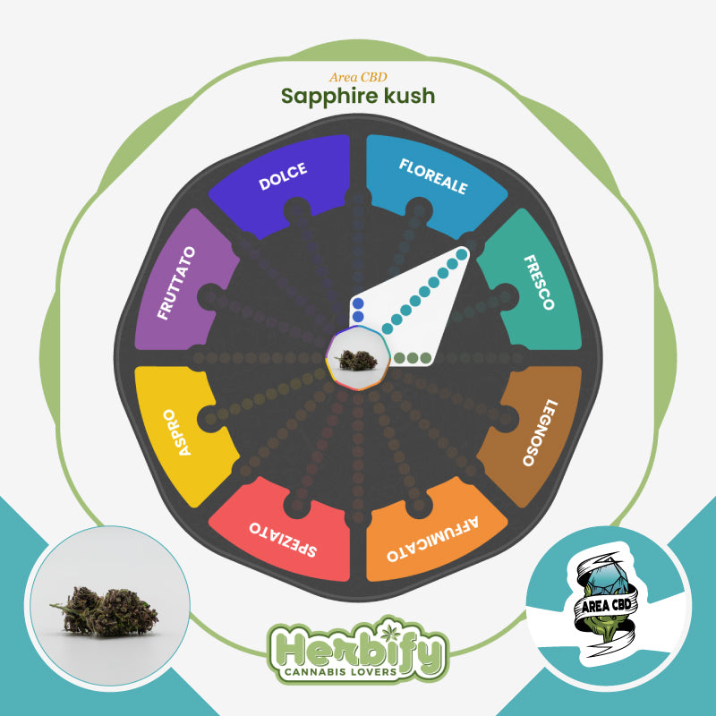 La Sapphire Kush prende ispirazione dalle linee Kush a dominanza indica, arricchite da genetiche dal profilo più fresco e floreale. Nata sulla scia delle selezioni moderne ispirate alla West Coast, si distingue per la combinazione di struttura compatta e aromi leggeri, puliti, quasi “cristallini”. Per il raccolto 2025, AreaCBD ne offre una versione CBD greenhouse, coltivata in serra per garantire condizioni stabili e massima espressione aromatica. Il risultato è una cannabis light dal carattere equilibrato, perfetta per chi cerca una varietà fresca, elegante e mai eccessiva.